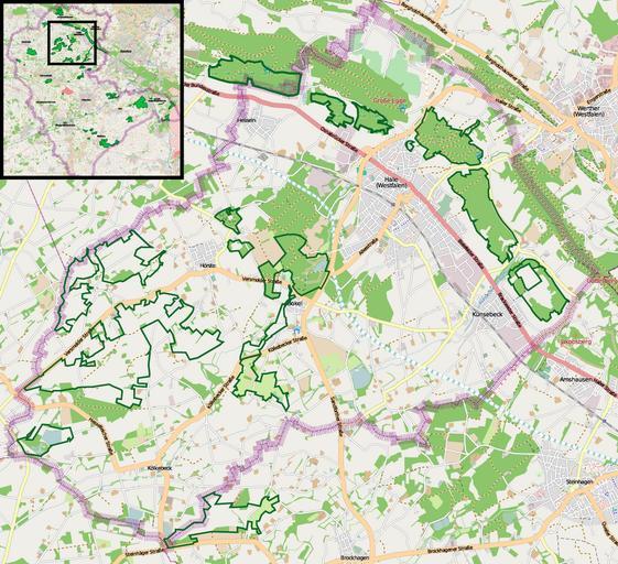 Keywords: Halle-(Westf.) - nature reserves.png Nature reserves in Halle North Rhine-Westphalia - overview map<br/>Number and borders of nature reserves are subject to frequent change In order to facilitate reproduction of this map from openstreetmap the following data is stored here <br/> export boundaries north 52 095; east 8 425; south 51 991; west 8 24; mapnik svg scale 1 70 000<br/> nature reserve boundary stroke weight 3 5; <br/>nature reserve stroke color R 5 G 102 B 36; <br/>district border stroke weight 20 Naturschutzgebiete in Halle Westf - à bersichtskarte Halle Rhénanie-du-Nord-Westphalie - vue d'ensemble Own based on http //www openstreetmap org/ Open Street Map 2011-03-17 Hagar66 Maps of Halle Westf Cc-zero |