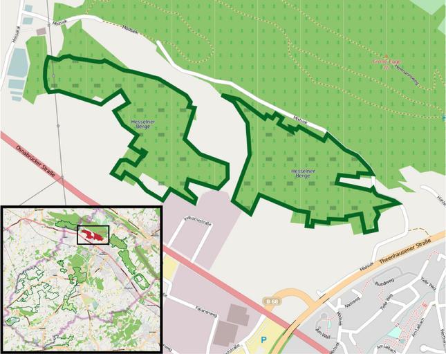 | Keywords: Halle (Westfalen) - NSG Hesselner Berge - Map.png Halle Westfalen - Nature reserve Hesselner Berge - overview map<br/>Number and borders of nature reserves are subject to frequent change In order to facilitate reproduction of this map from openstreetmap the following data is stored here <br/> export boundaries north 52 08; west 8 33; south 52 065; east 8 3607; mapnik svg scale 1 14 000<br/> nature reserve boundary stroke weight 10 0; <br/>nature reserve stroke color R 5 G 102 B 36; <br/>municipality border stroke weight as found Halle Westfalen - Naturschutzgebiet Hesselner Berge - à bersichtskarte Halle Westfalen - Réserve naturelle Hesselner Berge - vue d'ensemble Own 2011-04-01 Hagar66 Licensed under the GFDL by author 52 075945 8 340468 region DE Cc-zero Maps of Halle Westf Nature reserves in Halle Westf |