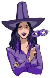 Keywords: halloween costume purple witch woman elegant hair top hat