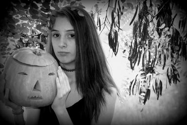 Keywords: halloween pumpkin girl forest