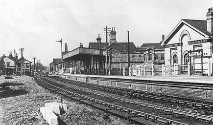 Keywords: 51 57N 0 38E Halstead railway station, 1947, was located in Halstead, Essex. 16 Apr 1860 Opened. 1 Jan 1962 Closed.