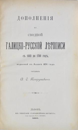 | Keywords: Halytsky Chronicle by Petrushevich 1241.jpg Антін Пет ушевич Зведений Галицько-Руський літопис з 1600 по 1700 Львів 1874 Титульний а куш З особистої бібліотеки І Ф анка A Petrushevich Halytsky-Rusian summary chronicle from 1600 to 1700 year Lviv 1874 Title page From Ivan Franko personal Library 1874 Institution Shevchenko Institute of Literature Digital Collection PD-old-70-1923 Antonii Petrushevych 1874 books Franko Personal Library Collections of books in libraries in Ukraine Shevchenko Institute of literature Uploaded with VicuñaUploader |