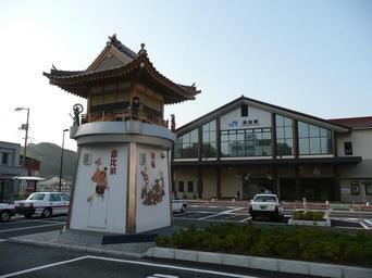 Keywords: Hamada station tokei.JPG en 駅前広場にある神楽時計 自身で撮影 上 ジョー 2010-12-23 Hamada Station Cc-zero