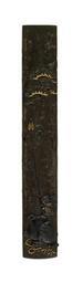| Keywords: Hamano Noriyuki II - Kozuka with Boy Standing on an Ox Trying to Catch a Cicada - Walters 51769.jpg The background of the kozuka resembles the trunk of a pine tree At the base of the tree a boy stands on the back of a seated ox With a long stick he is trying to reach a cicada in the tree between 1796 1852 late Edo nigurome gold cm 9 6 l accession number 51 769 36274 Henry Walters Baltimore date and mode of acquisition unknown Walters Art Museum Henry Walters Acquired by Henry Walters signature place of origin Edo present-day Tokyo Japan Walters Art Museum license Kozuka in the Walters Art Museum Hamano Noriyuki II Media contributed by the Walters Art Museum needs category review |