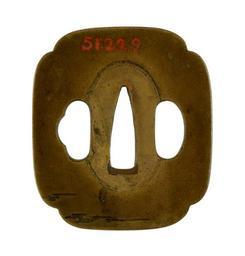 | Keywords: Hamano School - Tsuba with Bats and Crescent Moon - Walters 51229 - Back.jpg At the top of this tsuba a bat flies through the night sky A new moon is in on the right A second bat is at the lower right On the reverse incised lines at the lower left indicate water Bats are a symbol of happiness century 18 19 Edo-Meiji sentoku gold silver cm 6 1 5 4 0 39 accession number 51 229 4685 Henry Walters Baltimore date and mode of acquisition unknown Walters Art Museum Henry Walters Acquired by Henry Walters Signature Miboku place of origin Japan Walters Art Museum license Tsuba in the Walters Art Museum Media contributed by the Walters Art Museum needs category review Hamano School |