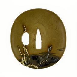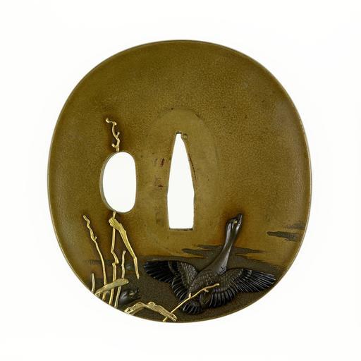 | Keywords: Hamano Shôzui - Tsuba with Geese and Reeds - Walters 51126.jpg The front of this tsuba shows two geese in water among reeds One goose is at the right while is second is hidden among reeds on the lower left On the back a full moon can be seen through the clouds These are popular motifs of autumn between 1715 1769 Edo sentoku shibuichi and gold cm 7 5 7 01 0 45 accession number 51 126 13285 Henry Walters Baltimore date and mode of acquisition unknown Walters Art Museum Henry Walters Acquired by Henry Walters Signature Shôzui place of origin Edo present-day Tokyo Japan Walters Art Museum license Tsuba in the Walters Art Museum Hamano Shôzui Reliefs of geese Media contributed by the Walters Art Museum needs category review |