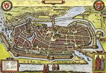 | Keywords: Hamburg Braun-Hogenberg.jpg Artwork creator Georg Braun and en Historical sight of the German town of Hamburg Hogenberg visited Hamburg in 1585 and again in 1588 St Nicolai church on the left is shown with the enormous spire of 1517 to be destroyed in 1589 still intact St Jacobi church on the right however is shown without any trace of the spire built in 1587-89 and depicted in Braun/Hogenberg's next Hamburg map of ca 1589/90 <br> 1585 1588 --Immanuel Giel 14 33 3 January 2006 UTC <br> Other versions Hamburg um 1600 Brook jpg Schiffbauerbrook um 1600 jpg kajen-um-1600 jpg ImageNote 1 3 420 362 362 2024 1404 2 300px ImageNoteEnd 1 PD-old-100-1923 Braun Hogenberg Hamburg Hamburg in the 16th century Hogenberg Maps of Hamburg-Altstadt 1585 Old maps of Hamburg 1585 1585 engravings Hamburg |