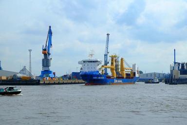 Keywords: hamburg port hamburg port hanseatic city ships harbour cranes container ship transport port of hamburg harbour city crane water channel bank