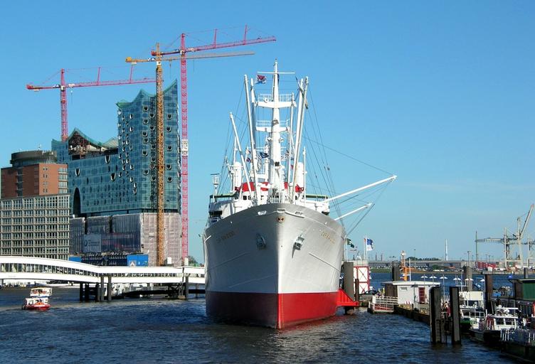 Keywords: hamburg port ship port city new building building architecture shipping hanseatic city anchor mast shipyard urban development urban development project elbe container ship river water harbour cranes technology transport