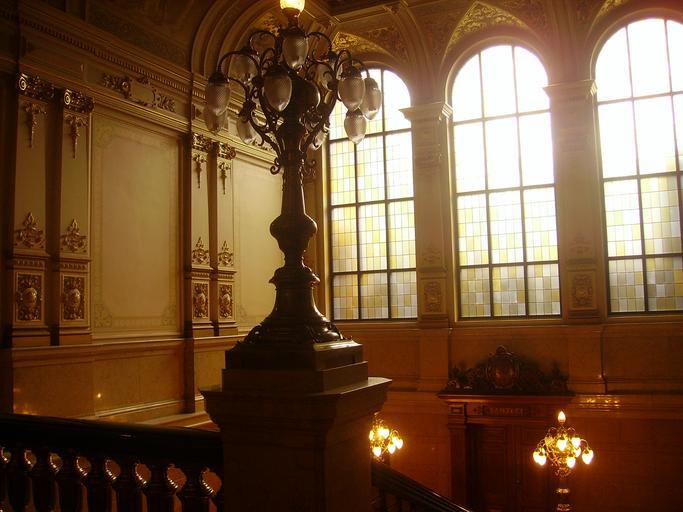 Keywords: Hamburg Rathaus Innen Treppenhaus 1.JPG en Staircase of the City Hall Hamburg de Treppenhaus des Rathauses Hamburg own Zairon 2009-07-24 Cc-zero Interior of the City Hall of Hamburg