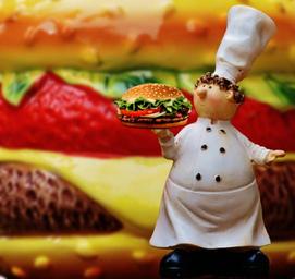 Keywords: hamburger cheeseburger cooking funny food preparation chef's hat fig sweet figures cook order call delicious eat cute
