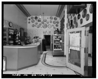 | Keywords: Hamilton Hotel - lobby - Portland Oregon.jpg Hamilton Hotel Oregon ” Lobby View looking east 1993 photograph from the HABS ”Historic American Buildings Survey images of Oregon - ;Credits OR-159-13 Lobby View looking east 90mm Photo by John Stamets HABS Library of Congress 1993-03 Historic American Buildings Survey HABS PD-USGov-Interior-HABS Hamilton Hotel Building interiors in Oregon 1993 in Oregon Black and white photographs of Oregon | ||||