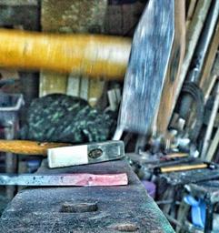 Keywords: Blacksmith's hammer on hot metal and anvil craft metalwork hammer motion anvil iron hot heat metal hammering making maker