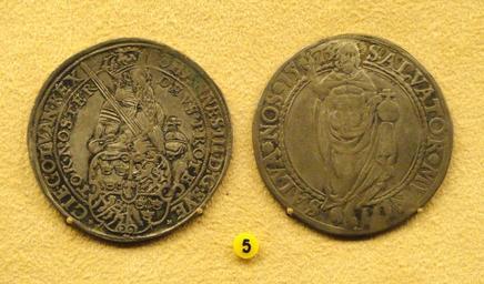 | Keywords: Hammered coin, Sweden, 1573 - National Museum of Finland - DSC04141.JPG en Coin / medal in the National Museum of Finland Helsinki Finland Photography was permitted in the museum without restriction This artwork is in the public domain because the artist s died more than 70 years ago Daderot 2012-08-14 08 42 27 Daderot cc0 cc0 Coins and medals in the National Museum of Finland Coins of Sweden | ||||