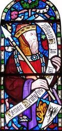 | Keywords: HamonDentatus 1860GrenvilleWindow KilkhamptonChurch.JPG en Hamon Dentatus Earl of Corboyle d 1047 Detail from 1st Grenville Window 1860 in south wall of Grenville Chapel Church of St James the Great Kilkhampton Cornwall His shield shows attributed invented arms of Azure a lion rampant or impaling Argent an eagle with two heads sable Window erected in 1860 by his supposed heirs male of the Grenville family George Granville Sutherland-Leveson-Gower 2nd Duke of Sutherland KG 1786-1861 ; John Alexander Thynne 4th Marquess of Bath 1831 “1896 ; George Granville Francis Egerton 2nd Earl of Ellesmere 1823 “1862 ; Lord John Thynne 1798-1881 DD Canon of Westminster a younger son of Thomas Thynne 2nd Marquess of Bath 1765-1837 KG own photo Lobsterthermidor <span class signature-talk >talk</span> 12 50 7 April 2014 UTC Window 1860; photo 2014 Grenville Window east Kilkhampton Church |