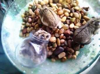 Keywords: hamsters pebbles glass bowl animals small pets cute