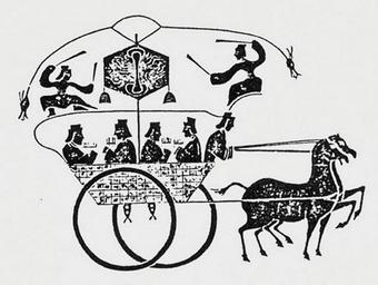 | Keywords: Han dynasty odometer cart.jpg Stone rubbing of an ancient Chinese Han Dynasty odometer horse cart 汉代记里鼓车 ; the original relief came from the Xiao Tang Shan Tomb c 125 AD Four musicians are seen seated in the cart and playing pan-pipes Rubbing in the collection of Mr E Bredsdorff from a tomb relief that is now located in the Palace Museum Beijing Han Dynasty 202 BC “220 AD An artist from the Han Dynasty PD-Art Art of the Han Dynasty Historical vehicles Stone rubbings Horse-drawn carts in art AH Odometers |