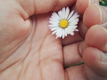 Keywords: hand palm hands daisy yellow white detail simplicity contrast girl composition spring