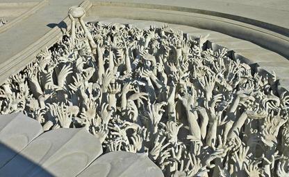 Keywords: hands artwork struggling hands pleading from the underground white temple chiang rai thailand temple complex