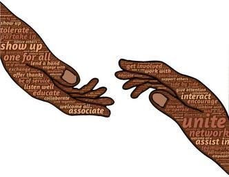 Keywords: hands help handshake assistance teamwork friendship partnership support we unity cooperation together community unite collaborate togetherness team union brown