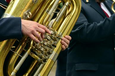 Keywords: hands musical instrument tuba brass band brass instrument wind instrument blowers traditionally music band brass music sheet golden gold customs orchestra shine
