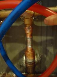 | Keywords: Handyman photos Fix Barber Wilson diverter valve 20.JPG en Here the tub downspout has been attached Soon supporting wood will be added to strengthen it Background This is image 20 of a repair project to fix a shower/tub diverter valve made by Barber Wilsons Co Ltd The handle which was supposed to divert water to the shower but it did not work; a plastic piece inside was broken Unfortunately since this valve could not be fixed from the front it required a major operation to open up the back and replace pipes I ended up replacing the defective valve with a Price Pfister valve-set so in future repairs will be easy 2015-09-18 own Tomwsulcer other versions cc-zero Uploaded with UploadWizard Plumbing Handyman photos by tom sulcer |