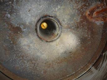 | Keywords: Handyman project to disassemble hot water heater 19.JPG en The flue pipe of a hot water heater center hole looking up from the bottom seen from the bottom of a soon-to-be-discarded hot water heater The exhaust rises up through this hole to be vented to the chimney Photo from a project to remove a bulky heavy non-needed 75 gallon hot water heater from a basement 2013-02-25 21 55 59 own Tomwsulcer cc-zero Uploaded with UploadWizard Water heating devices Handyman photos by tom sulcer Pipes |
