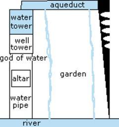 | Keywords: Hanging Garden.gif A hanging garden 21st century interpretation In the front under this image is a river In the left a pipe go the well tower in the middle a water tower in the right garden by many fruit trees on a slope by tree pointed vaults and irrigation on a layer of asphalt and on the pipe is a altar by points Jasc Paint Shop Peter Ole Kvint PD Hanging Gardens of Babylon |