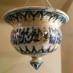 | Keywords: Hanging lamp, Syria, 19th century, earthenware, underglaze-painted - Huntington Museum of Art - DSC05016.JPG en Exhibit in the Huntington Museum of Art Huntington West Virginia USA Photography was permitted in the museum without restriction This artwork is in the public domain because the artist died more than 70 years ago 2013-05-16 13 59 23 own Daderot cc-zero Hanging light fixtures Earthenware Ceramics of Syria in the Huntington Museum of Art Uploaded with UploadWizard | ||||