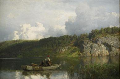 | Keywords: Hans Gude - Analkande oväder (1871).jpg Artwork Creator Hans Gude 1871 oil canvas cm 30 46 object history Wangs Kunsthandel Oslo 1949 credit line H Gude 71 ~ lower left signature and date accession number http //auktionsverket se/auction/fine-arts/2011-12-06/2158-hans-gude-norge-1825-1903-analkande-ovader/ Stockholms Auktionsverk 2011 12 lot 2158 PD-old-100 Paintings by Hans Gude Landscape paintings of Norway 1870s landscape paintings Oil paintings of seascapes Fishing in art 1871 oil on canvas paintings Images from Stockholms Auktionsverket 19th-century paintings location missing |