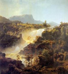 View Original:Hans Gude--Tessefossen I Vaga I Middagsbelysning--1848-.jpg (1242x1350)