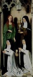 | Keywords: Hans Memling 066.jpg Artwork de Triptychon der Mystischen Hochzeit der Hl Katharina von Alexandrien rechter Außenflügel Stifterinnen Agnes Casembrood und Clara van Hulsen mit der Hl Agnes und der Hl Clara Oil Wood cm 172 79 de Brügge de Memlingmuseum de Auftraggeberinnen Agnes Casembrood und Clara van Hulsen The Yorck Project 10 000 Meisterwerke der Malerei DVD-ROM 2002 ISBN 3936122202 Distributed by DIRECTMEDIA Publishing GmbH 1479 Creator Hans Memling http //mail wikipedia org/pipermail/wikide-l/2005-April/012195 html Other versions PD-old-100 PD-Art-YorckProject Early Netherlandish paintings 1479 paintings Saint John polyptych by Hans Memling 15th-century paintings of Christian saints Clare of Assisi Portraits with patron saints |