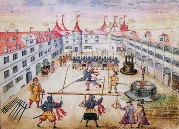 | Keywords: Hans Philipp Greter, Fußturnier.jpg de Hans Philipp Greter Fußturnier Tübingen 1602 Es handelt sich um eine spätere Turnierform die sich erst im 16 Jh durchsetzte Stammbuch des Andreas Chemnitius Glauchau u a 1597-1626 Museum für Kunst und Gewerbe Hamburg Inv Nr 1908 524 nach Die Renaissance im deutschen Südwesten Bd 2 Karlsruhe 1986 S 915 http //resikom adw-goettingen gwdg de/showpic php ID 823 Residenzen-Kommission Arbeitsstelle Kiel - Akademie der Wissenschaften zu Göttingen Hans Philipp Greter Johann Philipp Greter 1602 Johann Philipp Greter Tübingen in art 1602 in Tübingen PD-old-100 |