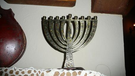 Keywords: Hanukkah Menorah 9.JPG en Hanukkah Menorah in the Anatewka restaurant in Lodz Poland own Brücke-Osteuropa 2010-06-23 Hanukiah