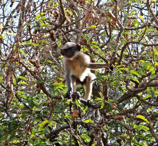 Keywords: hanuman langur primate monkey dharwad india tamarind tree baby