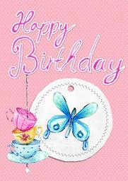Keywords: happy birthday card greeting pink butterfly teacup girl celebration event happy birthday happy birthday card party cake design family fun gift colorful happiness humor joy joyful day invitation birthday card anniversary age drawing woman