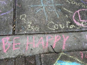 Keywords: happy courage chalk drawing handwriting handwritten positive words playground sidewalk