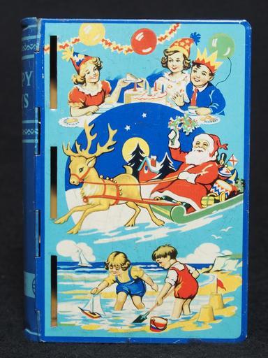 Keywords: Happy Days tin book, photo 1.JPG Very old product that is not produced and not sold any more Note that some tins may look the same but when looked for carefully there are some slight differences For more info see http //www tincollectors nl/ tincollectors nl or email info tincollectors nl own 2014-11-23 08 36 57 Alf van Beem CC-zero Trademarked Money-box tins