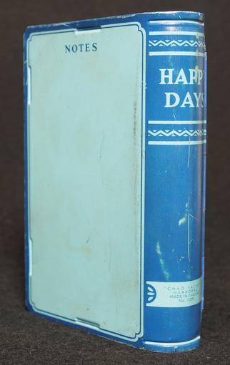 Keywords: Happy Days tin book, photo 3.JPG Very old product that is not produced and not sold any more Note that some tins may look the same but when looked for carefully there are some slight differences For more info see http //www tincollectors nl/ tincollectors nl or email info tincollectors nl own 2014-11-23 08 37 21 Alf van Beem CC-zero Trademarked Money-box tins