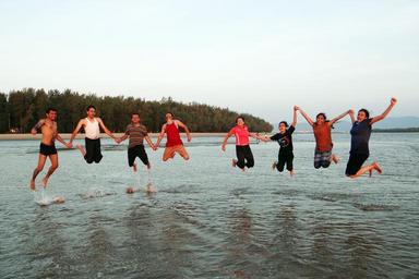 Keywords: happy people happy jumping beach frolic youngsters arabian sea karwar india