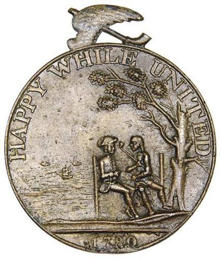 MAKE A MEME View Large Image Happy While United colonial medal.jpg en Happy While United was the slogan on a medal coined by the State of Virginia in 1780 First envisioned by Thomas Jefferson the medal was minted and designed to be given to Indian signatories to the ...