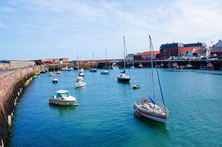 Keywords: harbor boats sea water port ship blue yacht vessel coast town marina harbour nautical fishing pier