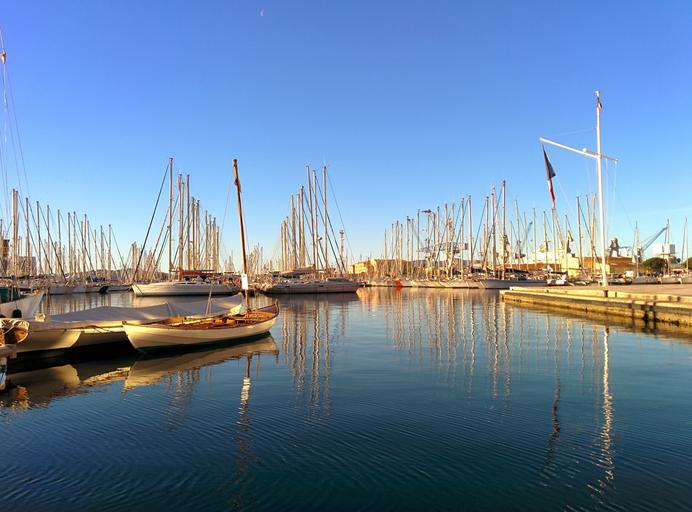 Keywords: harbor quiet sunlight sailboat reflection sea water pier boat calm marina landscape sky