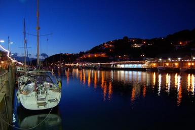 Keywords: harbour boat night port ocean vessel transport travel nautical bay dock coast marina mediterranean pier yacht ship sailboat cruise shore riviera reflection seascape