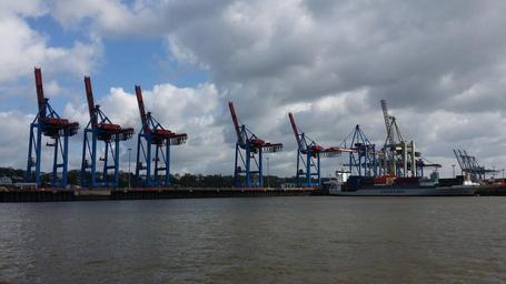 Keywords: harbour crane port crane harbour cranes industry boat crane hamburg germany elbe