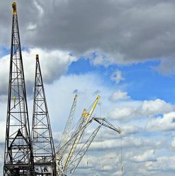 Keywords: harbour cranes sky clouds blue sky industry port cranes shipping loading cranes transport of goods transport general cargo loading unloading loading and unloading