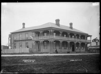 | Keywords: blackandwhite monochrome outdoor architecture building photo border black and white View of The Harbour View Hotel, Raglan. A bearded man wearing a bowler hat is seated on the front step, and there is a dog nearby. Photographed in 1910, probably by Gilmour Brothers, Raglan (Robert Gilmour, proprietor). Inscriptions: Inscribed - Photographer's title on negative -bottom left: Harbour View Hotel, Raglan N.Z. 158bottom right: G Bros Protd 1.7.10. Quantity: 1 b&w original negative(s). Physical Description: Dry plate glass negative 4.5 x 6.5 inches Gilmour Brothers (Firm). Harbour View Hotel, Raglan, 1910 - Photograph taken by Gilmour Brothers. Price, William Archer, 1866-1948 :Collection of post card negatives. Ref: 1/2-000321-G. Alexander Turnbull Library, Wellington, New Zealand. natlib.govt.nz/records/23240056 View of The Harbour View Hotel, Raglan. A bearded man wearing a bowler hat is seated on the front step, and there is a dog nearby. Photographed in 1910, probably by Gilmour Brothers, Raglan (Robert Gilmour, proprietor). Inscriptions: Inscribed - Photographer's title on negative -bottom left: Harbour View Hotel, Raglan N.Z. 158bottom right: G Bros Protd 1.7.10. Quantity: 1 b&w original negative(s). Physical Description: Dry plate glass negative 4.5 x 6.5 inches Gilmour Brothers (Firm). Harbour View Hotel, Raglan, 1910 - Photograph taken by Gilmour Brothers. Price, William Archer, 1866-1948 :Collection of post card negatives. Ref: 1/2-000321-G. Alexander Turnbull Library, Wellington, New Zealand. natlib.govt.nz/records/23240056 |