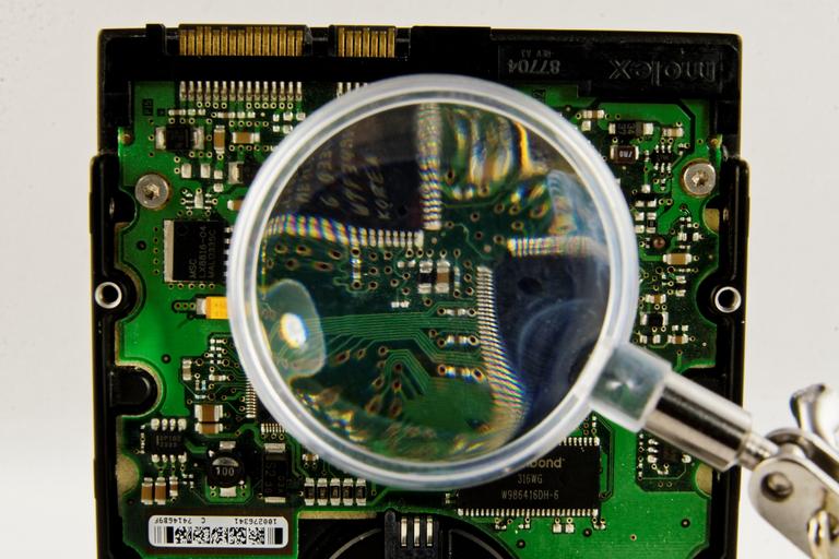 Keywords: hard drive hdd technology digital computer trace board magnifying glass magnification smd chip semiconductor silicon electronics elektroniker