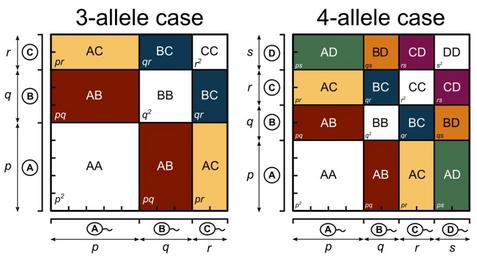 | Keywords: Hardy–Weinberg law - Punnett square2.svg en Hardy “Weinberg law in Punnett square Design of the diagram is based on File Schemat punneta2 svg and http //www genetics org/content/201/1/1 figures-only Noah A Rosenberg Jonathan T L Kang Genetic Diversity and Societally Important Disparities GENETICS September 1 2015 vol 201 no 1 1-12 2016-11-05 own thumb left 2-allele case Hardy “Weinberg law Punnett squares Zygosity Cc-zero | ||||