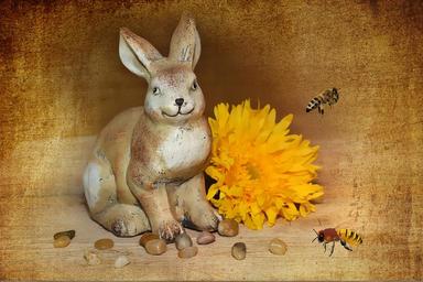 Keywords: hare dekohase easter bunny flower blossom bloom dekoblume yellow stones bees deco decoration decorative painting digital painting